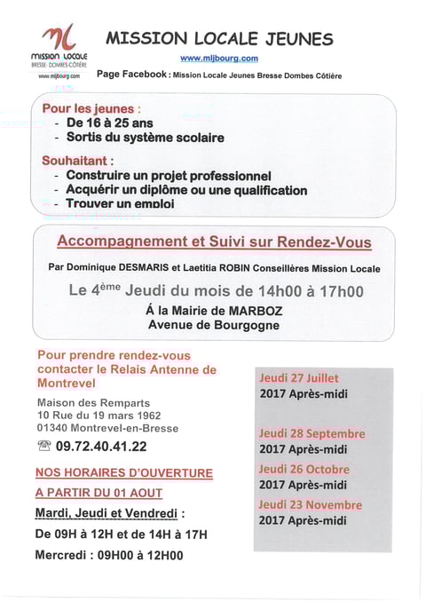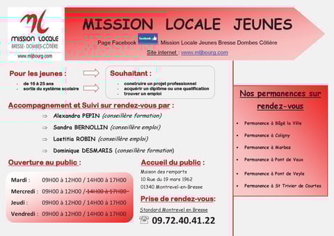 Vous trouverez toutes les informations sur la Mission Locale Jeunes Bresse Dombes Côtière sur le site www.mljbourg.com